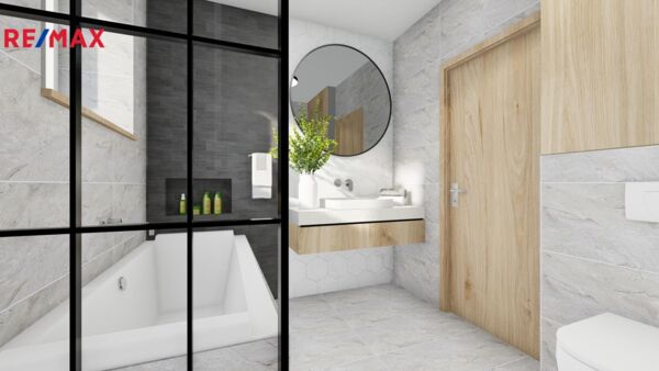 Vyobrazené vizualizace interiéru a zahradní úpravy nejsou zahrnuty v ceně.