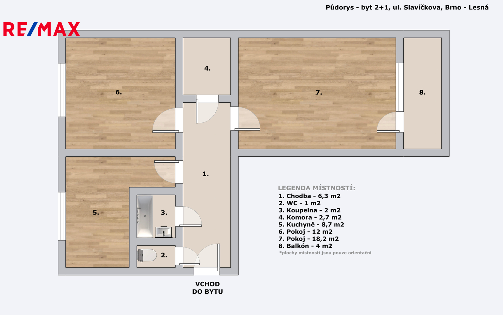 Ve výhradním zastoupení majitele nabízíme ke koupi byt 2+1 v osobním vlastnictví. Bytová jednotka je v původním stavu a má dle prohlášení vlastníka výměru 53.56 m² + sklep 1.99 m² + 2.25 m² balkon, nachází se v 3.patře osmipodlažního panelového domu s výtahem, na ulici Slavíčkova ve vyhledávané brněnské čtvrti Lesná.