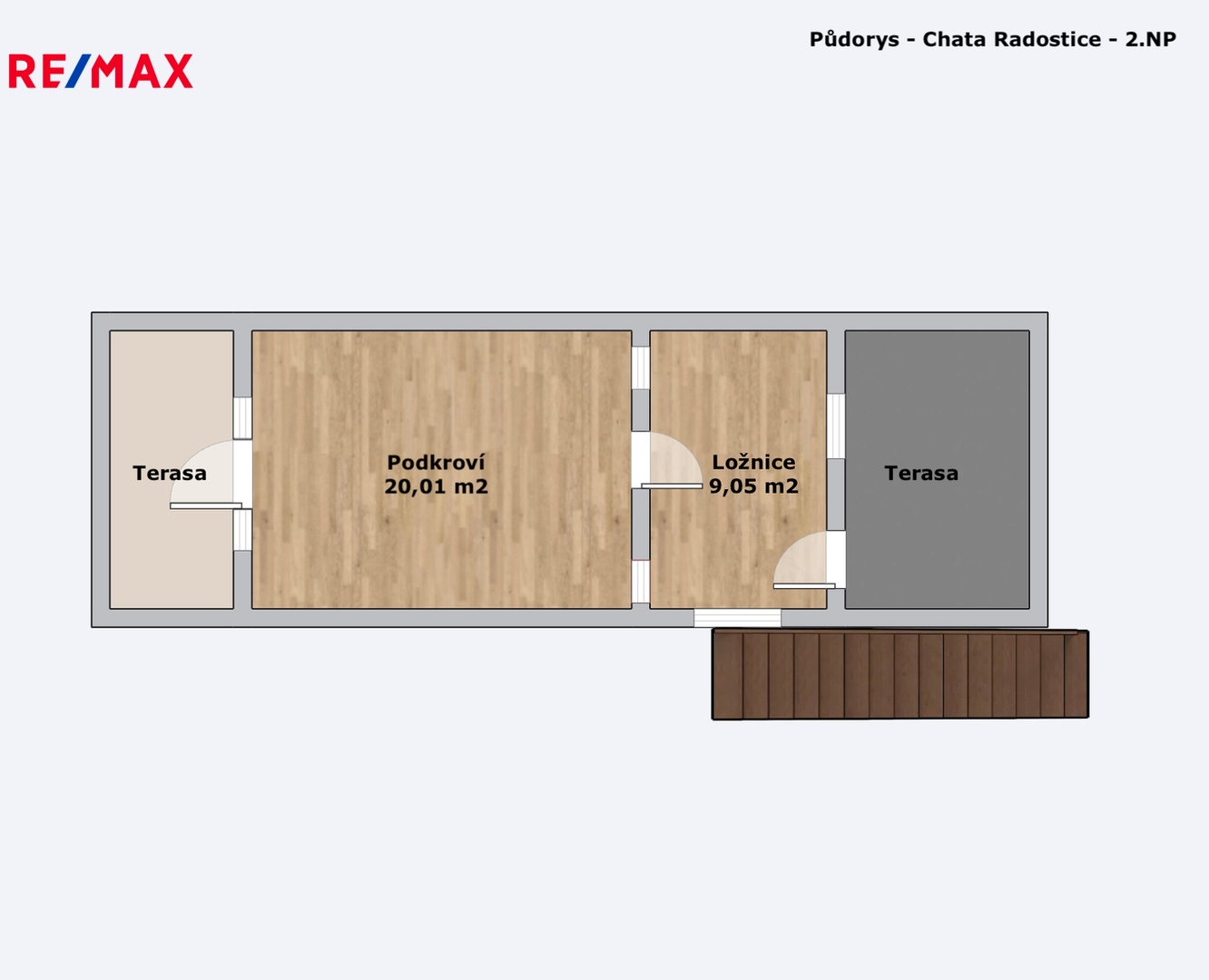 Chata má obytnou podlahovou plochu necelých 68m2. Současné dispoziční řešení chaty je velice neobvyklé vzhledem k tomu, že patra nejsou propojena vnitřním, ale pouze venkovním schodištěm. Dispozice odpovídá 4+1. Doporučuji shlédnout, video, půdorysy a stavebně-technickou dokumentaci. Chata disponuje přípojkou pitné vody, elektřiny a jímkou. Na pozemku je také studna, která je v současné chvíli nefunkční.