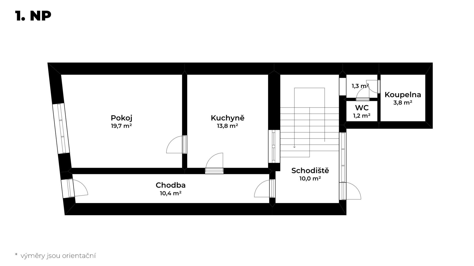Aktuální dispozice: 1NP - 1+1, 2NP - 2+1, koupelna a toaleta v mezipatře