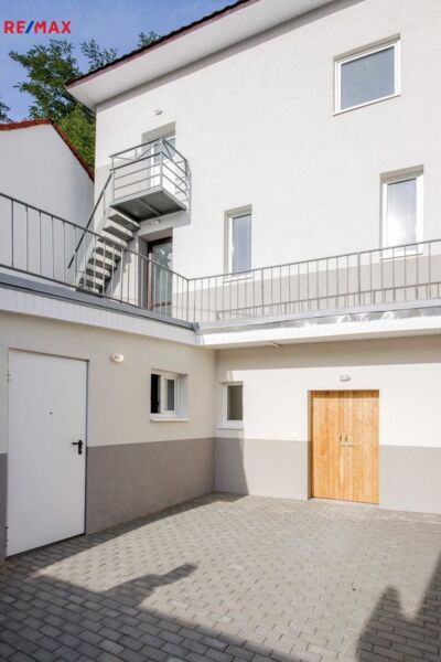 V přízemí se dále také nachází samostatný byt 1+kk přístupný z nádvoří samostatným vchodem a sklepní prostor, také samostatně přístupný. K dispozici jsou také 3 parkovací místa přímo u domu. Dům je napojen na všechny inženýrské sítě.