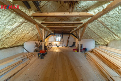 Třetí apartmán o výměře 65,8 m2, ve kterém je potřeba dodělat podbití palubkovými latěmi, má přímý vstup z galerie v domě i ze zahrady může tak být stavebně oddělen a využíván v případě potřeby komerčně.