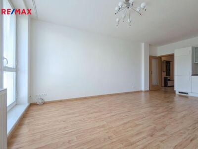 • prostorný obývací pokoj (24 m²) s velkými francouzskými okny, která vedou přímo na balkon, s krásným výhledem do zeleně
